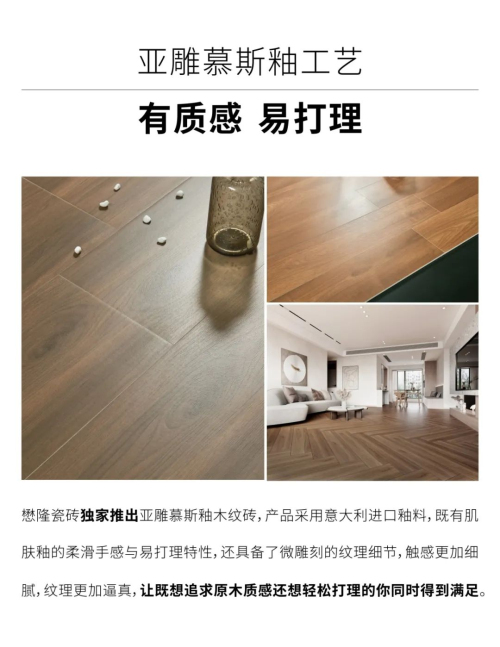 懋隆瓷磚先后獲得“木紋磚領軍品牌”、“廣東省木紋磚前三甲品牌”等重磅榮譽,產品入選優衣庫、肯德基、漢庭酒店等著名連鎖工程,是陶瓷行業中具有知名度和影響力的木紋磚品牌。